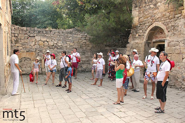 Первый пункт культурной программы — пешеходная прогулка по Феодосии, городу, удостоившимся стать местом встречи МТ5 форумян. Рассказ о достопримечательностях Феодосии носил характер живой беседы экскурсовода и участников, что не давало никому скучать. Прогулка началась с центра города — памятника Александру Грину — и плавно перешла в тихие зеленые улицы с не менее интересным прошлым. Заключительной частью стало посещение знаменитой Генуэзской крепости, откуда открылся завораживающий вид на Черное море.