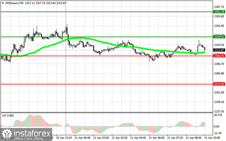 • Scenario No. 2: Ethereum can also be bought from the lower boundary of $2,306 if there is no market reaction to its breakout back to levels $2,329 and $2,361.