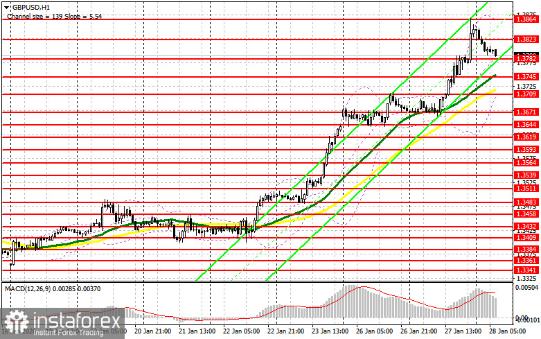Продавцы фунта пользуются ростом и проявляют себя лишь при достижении довольно привлекательных цен и то, только в спекулятивных целях. Против такого бычьего рынка крупные игроки пока не готовы выступать. В случае дальнейшего роста пары на первое проявление продавцов GBP/USD можно рассчитывать лишь после формирования ложного пробоя в районе сопротивления 1.3823. Только это будет точкой входа для продажи GBP/USD против тренда с целью снижения к 1.3782. Прорыв и обратный тест снизу вверх этого диапазона нанесут более крупный удар по позициям покупателей, приведя к сносу стоп-приказов и открыв путь к 1.3745, где проходят средние скользящие, играющие на стороне быков. Самой дальней целью выступит область 1.3709, где буду фиксировать прибыль. При варианте роста GBP/USD и отсутствия активности на 1.3823, покупатели получат шанс на более мощный рывок и на продолжение развития бычьего рынка с движением в район 1.3864. Открывать там короткие позиции собираюсь также лишь на ложном пробое. При отсутствии движения вниз и там я буду продавать GBP/USD сразу на отскок от 1.3910, но лишь в расчете на коррекцию пары вниз на 30-35 пунктов внутри дня.