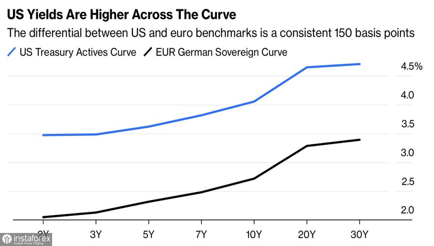 Динамика кривых доходности облигаций США и Германии
