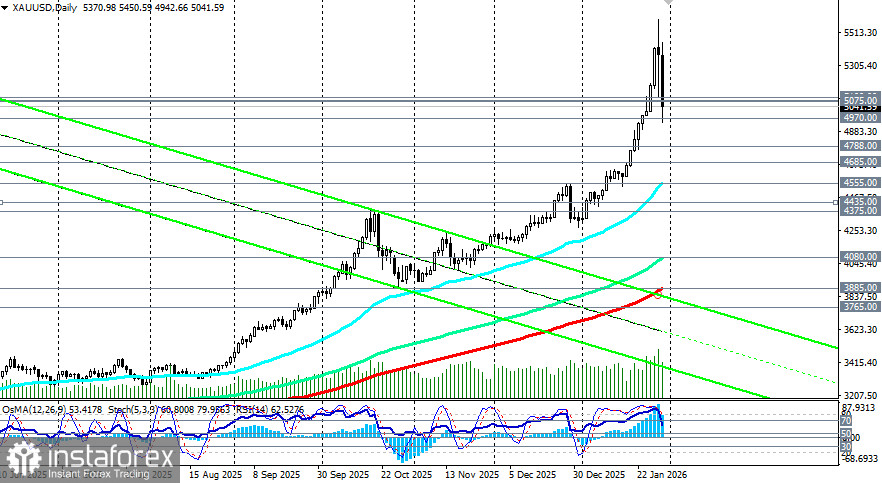Рынок золота за несколько дней января пережил один из самых драматичных эпизодов в своей новейшей истории. Всего за несколько часов в последний торговый день месяца цена на драгоценный металл рухнула более чем на 8%, обрушившись с исторического максимума около 5600.00 долларов за унцию до уровня ниже 5000.00. Этот оглушительный обвал, стерший с рынка, по разным данным, около 3,5 трлн долларов капитализации, стал суровой проверкой на прочность для бычьего тренда, который до этого принес золоту самый сильный месячный рост с 1980 года — почти +18%.