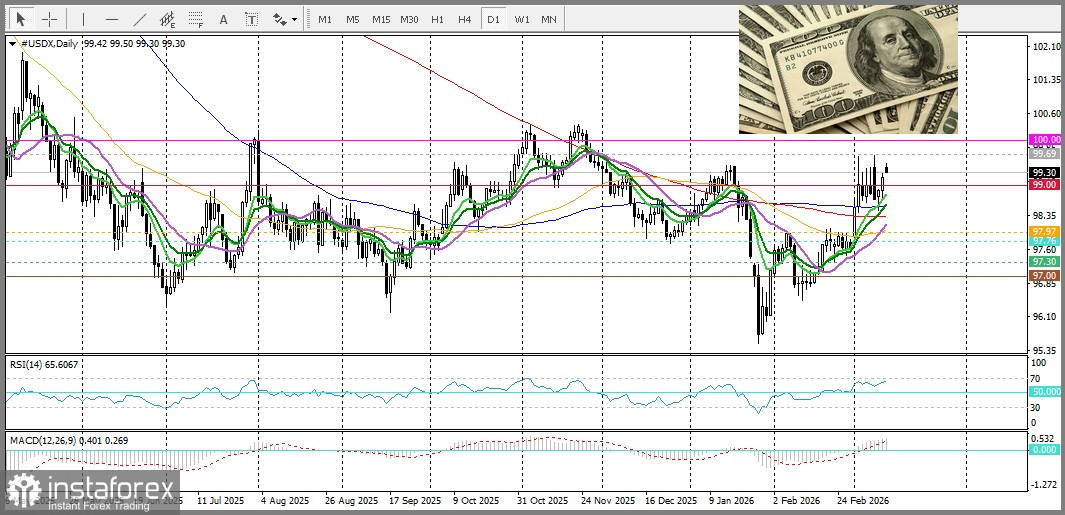 Опубликованные накануне данные Бюро статистики труда США показали, что базовый индекс потребительских цен (CPI) в феврале вырос на 0,2% относительно января, а годовой показатель остался на уровне 3,1%. Показатели подтверждают умеренный рост инфляции, однако геополитические риски усиливают опасения перегрева ценового давления. Это стимулирует рост доходности казначейских облигаций США и способствует укреплению доллара.