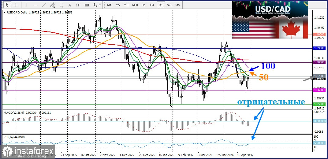 А с технической точки зрения, пара торгуется под всеми важными скользящими средними, осцилляторы отрицательные, указывая на слабость быков. Но стоит обратить внимание, что цены держатся вблизи максимума вчерашнего закрытия, в ожидании ключевых новостей по монетарной политике этих двух стран, если произойдет импульс, прорвавший круглый уровень 1,3700, и преодолевший слияние 100- и 50-дневных SMA, у быков появится шанс на дальнейший рост.