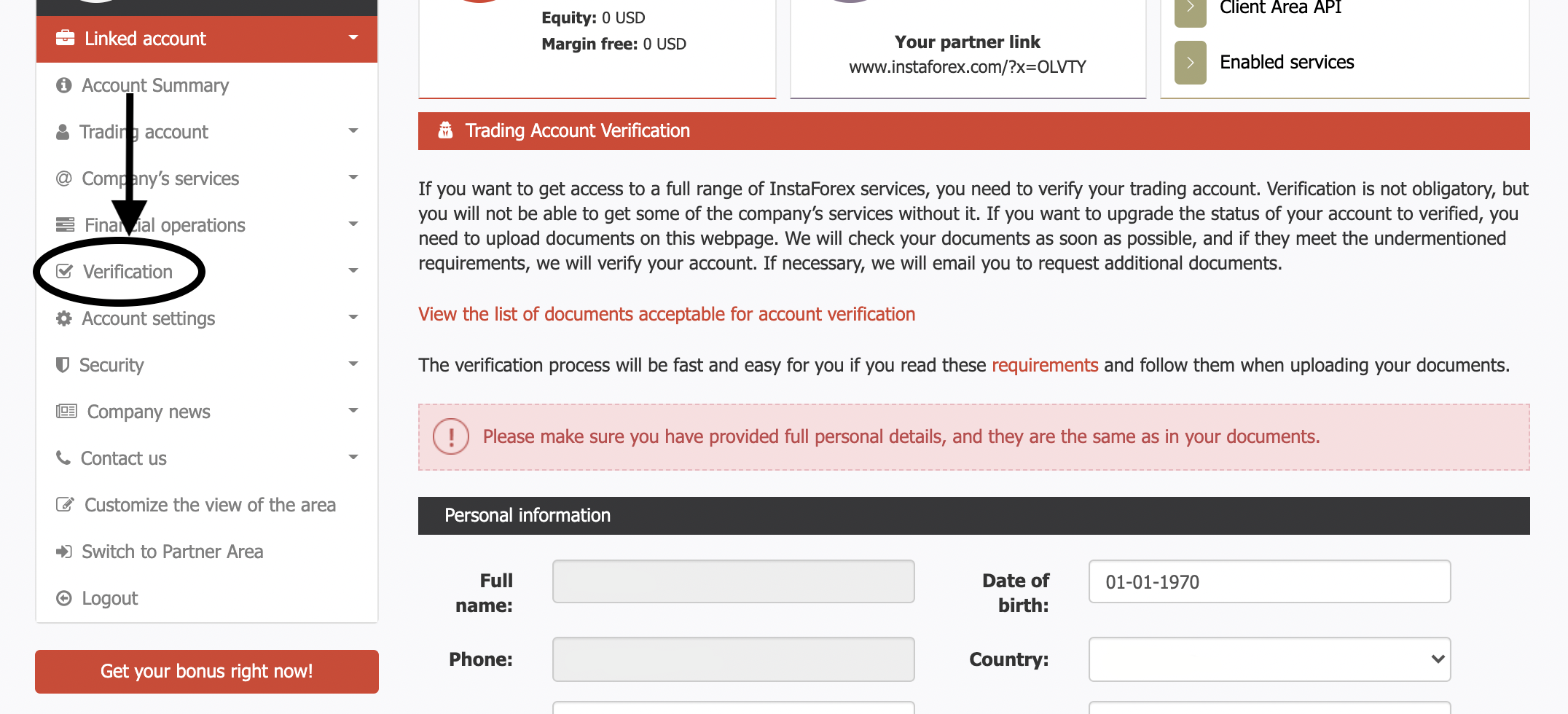 Log into your Client Area. Go to the Verification - > Account verification section in the side menu on the left.
