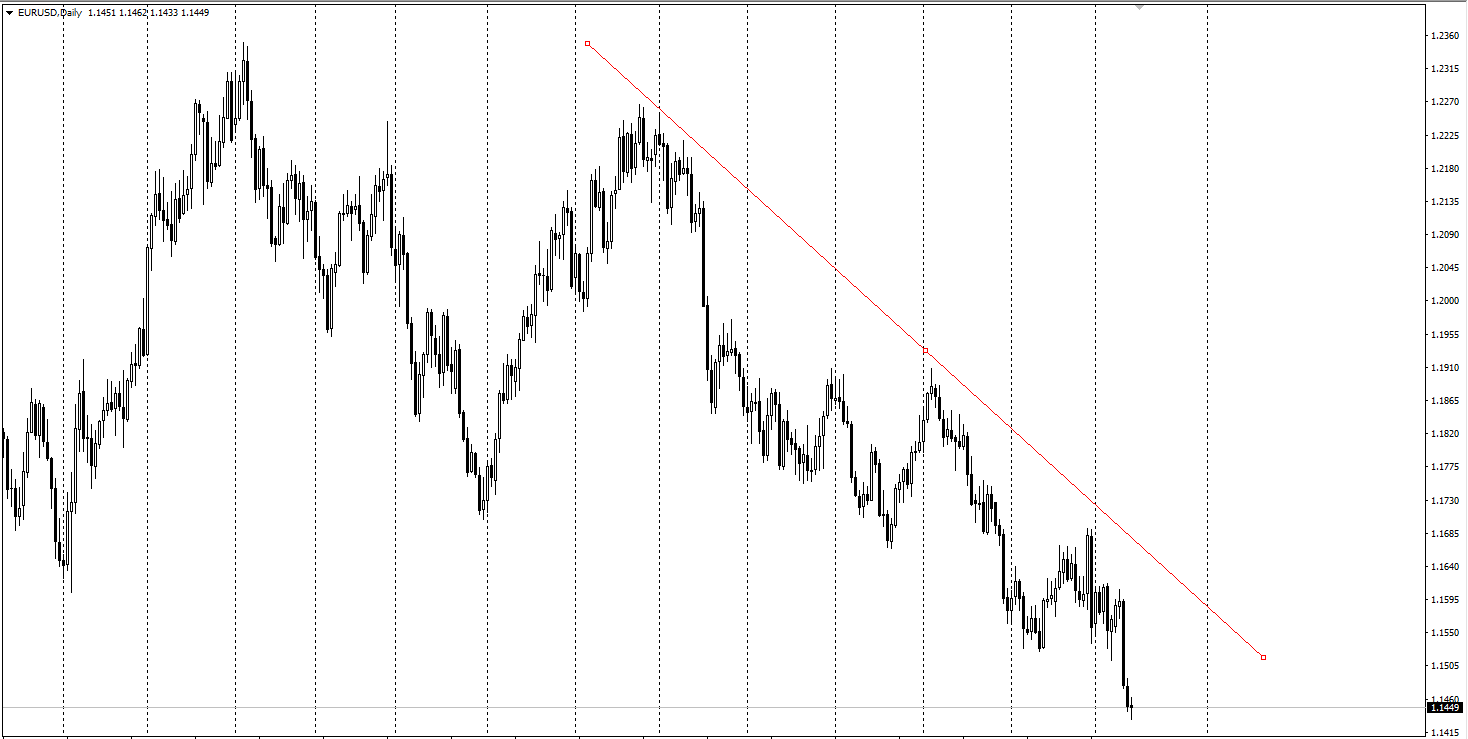 Найважливіша характеристика лінії тренду - це величина її кута. Вона показує домінуючу силу ринку.
